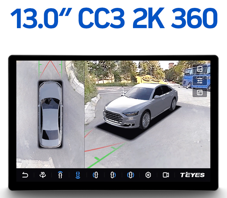 Магнитола для Audi Q5 8R 2008-2016 с джойстиком MMI (рамка 10) - Teyes CC3-2K-360 монитор 13" 2K QLED на Android 10, 6Гб+128Гб, CarPlay, 4G SIM-слот, 4 камеры в комплекте