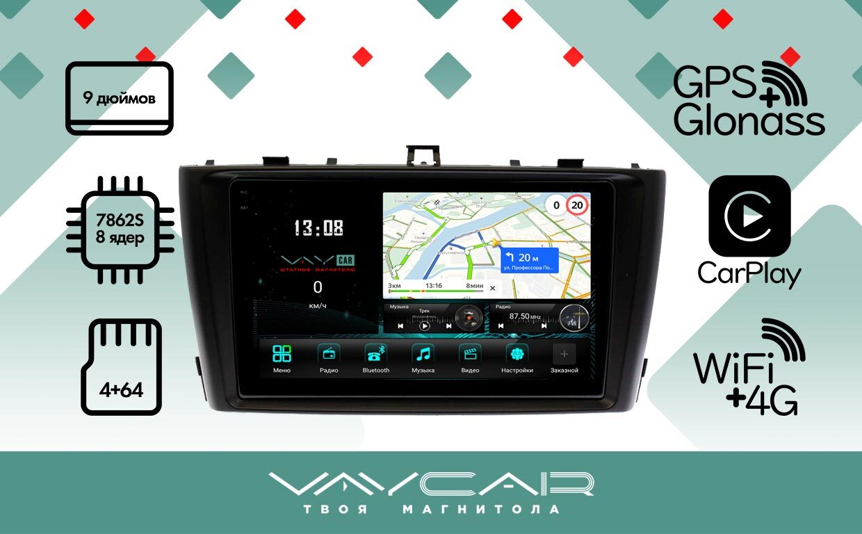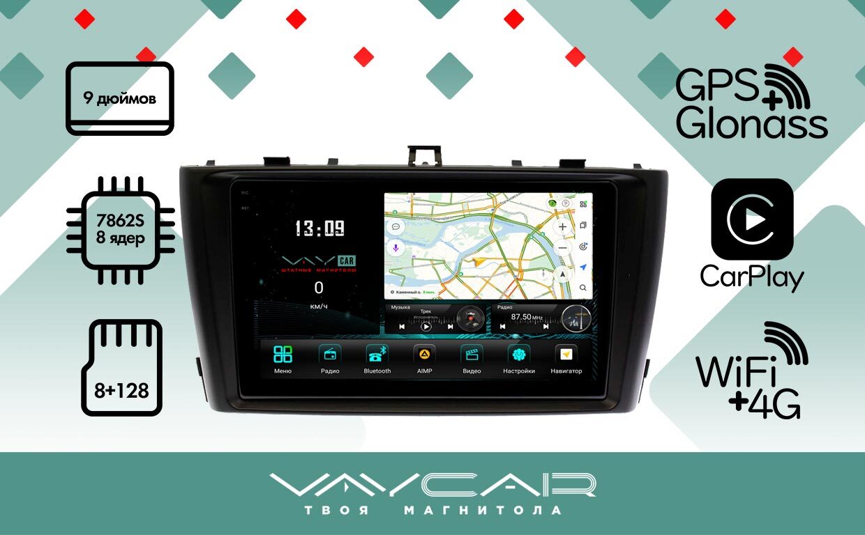 Магнитола для Avensis 2009-2013 - Vaycar VA77-1224-2K на Android 13, 8-ядер, 2K QLED, ТОП процессор, CarPlay,4G SIM-слот