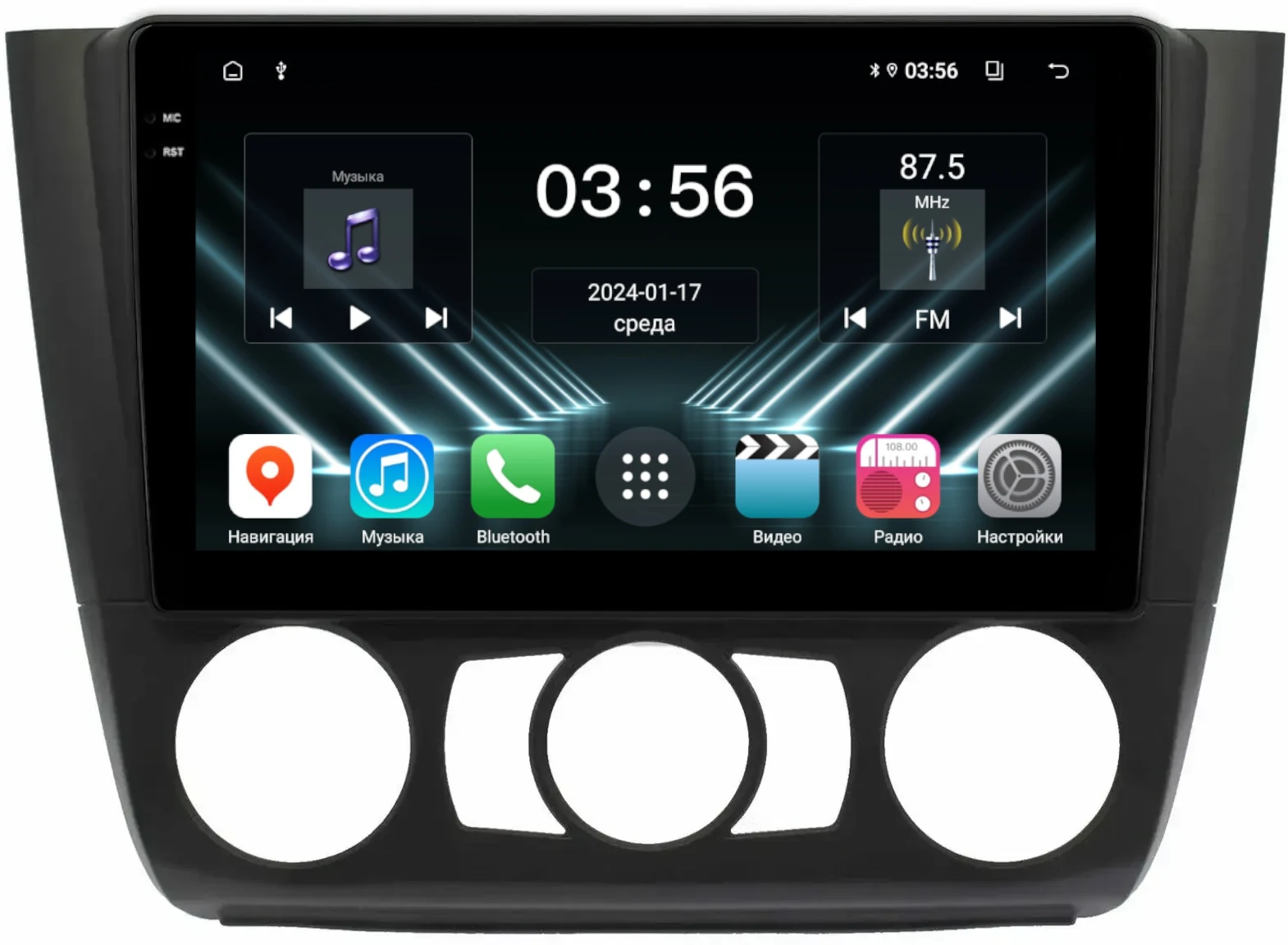 Магнитола для BMW 1-серии E81, E82, E87 2006-2012 (без штатного монитора, кондиционер) - FarCar DX095M монитор 9.5" IPS на Android 13, 4+64Гб, CarPlay