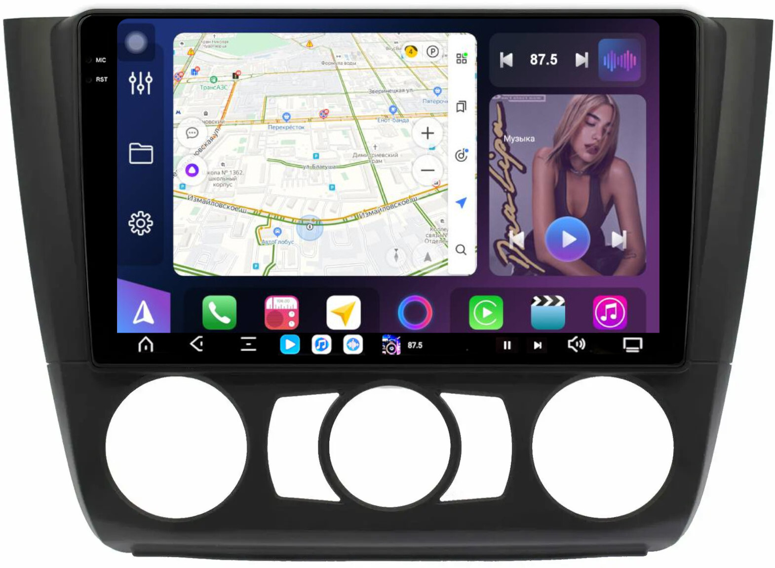 Магнитола для BMW 1-серии E81, E82, E87 2006-2012 (без штатного монитора, кондиционер) - FarCar GX095M монитор 9.5" 2K QLED на Android 14, TS20, 6+128Гб, CarPlay, 4G SIM-слот