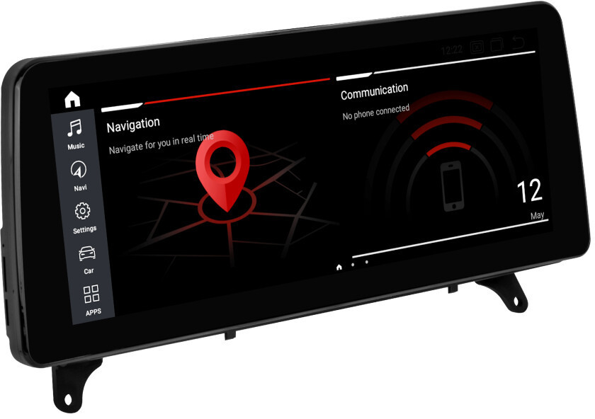 Система предназначена для замены заводского CCC экрана на сенсорный Андроид монитор 12.3" дюймов и расширения функций оригинальной магнитолы BMW, с активным режимом AUX.
