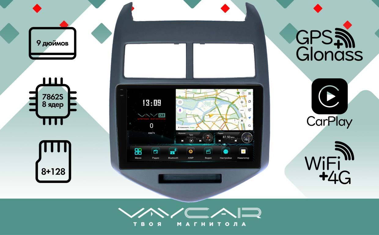 Магнитола для Chevrolet Aveo 2012-2015 - Vaycar VA10-0107-2K на Android 13, 8-ядер, 2K QLED, ТОП процессор, CarPlay,4G SIM-слот