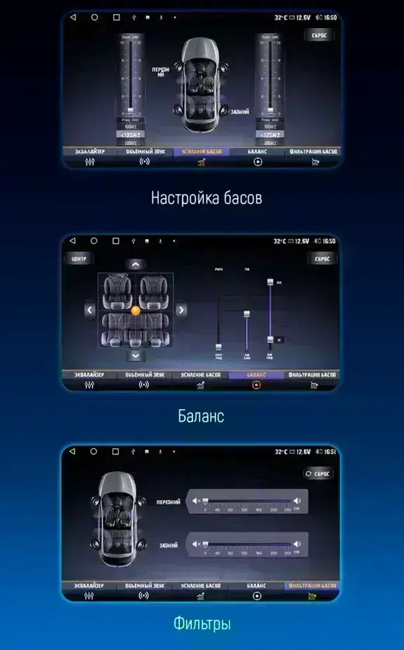 Процессор Процессор Unisoc UIS7870 имеет 200% быстродействия от комфортного для автомагнитол. Полная загрузка обычно занимает около 20-30 секунд, а выход из режима сна - мгновенно!