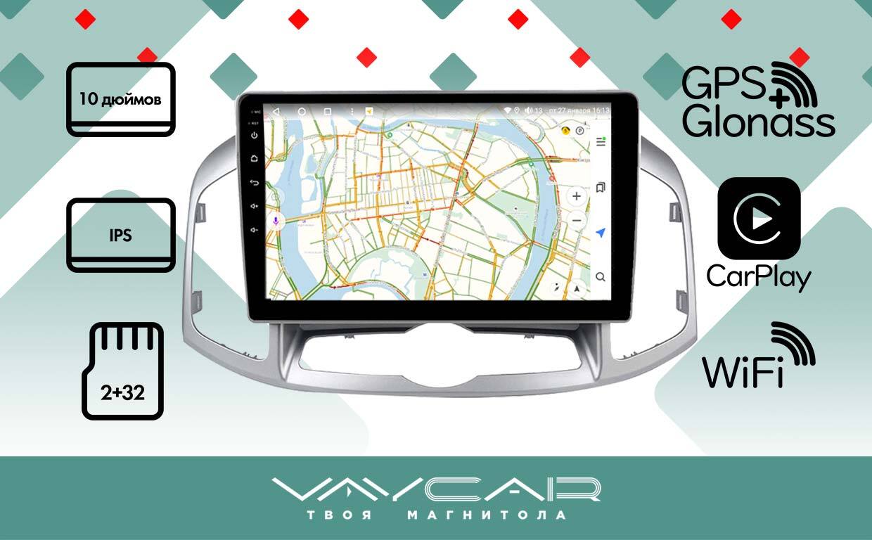 Магнитола для Chevrolet Captiva 2011-2015 - Vaycar VA10-0109 на Android 13, 8-ядер, 2Гб-32Гб, 4G SIM-слот
