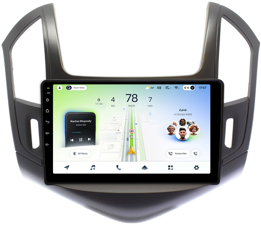 Магнитола для Chevrolet Cruze 1 2012-2015 (рамка черная) - Teyes CC4L монитор 9" IPS на Android 14, Snapdragon 662, CarPlay, 4G SIM-слот