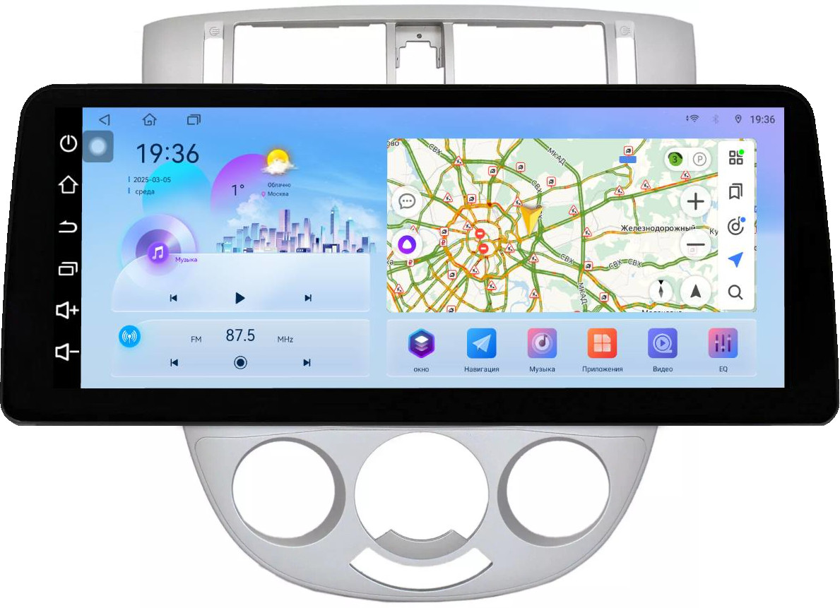 Магнитола для Chevrolet Lacetti седан/универсал, Daewoo Gentra (кондиционер, рамка серебро) - FarCar монитор 12.3" 2K QLED на Android 14, TS10, CarPlay, 4G SIM-слот