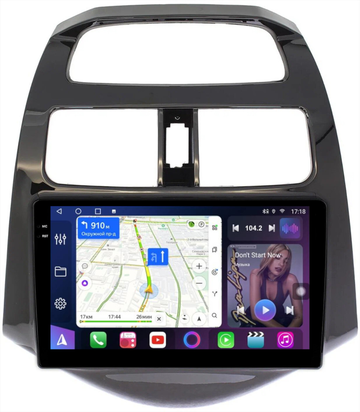Магнитола для Chevrolet Spark M300 2009-2022, Ravon R2 (рамка глянцевая) - FarCar 3039GL монитор 9.5" QLED на Android 14, TS18, CarPlay, 4G SIM-слот