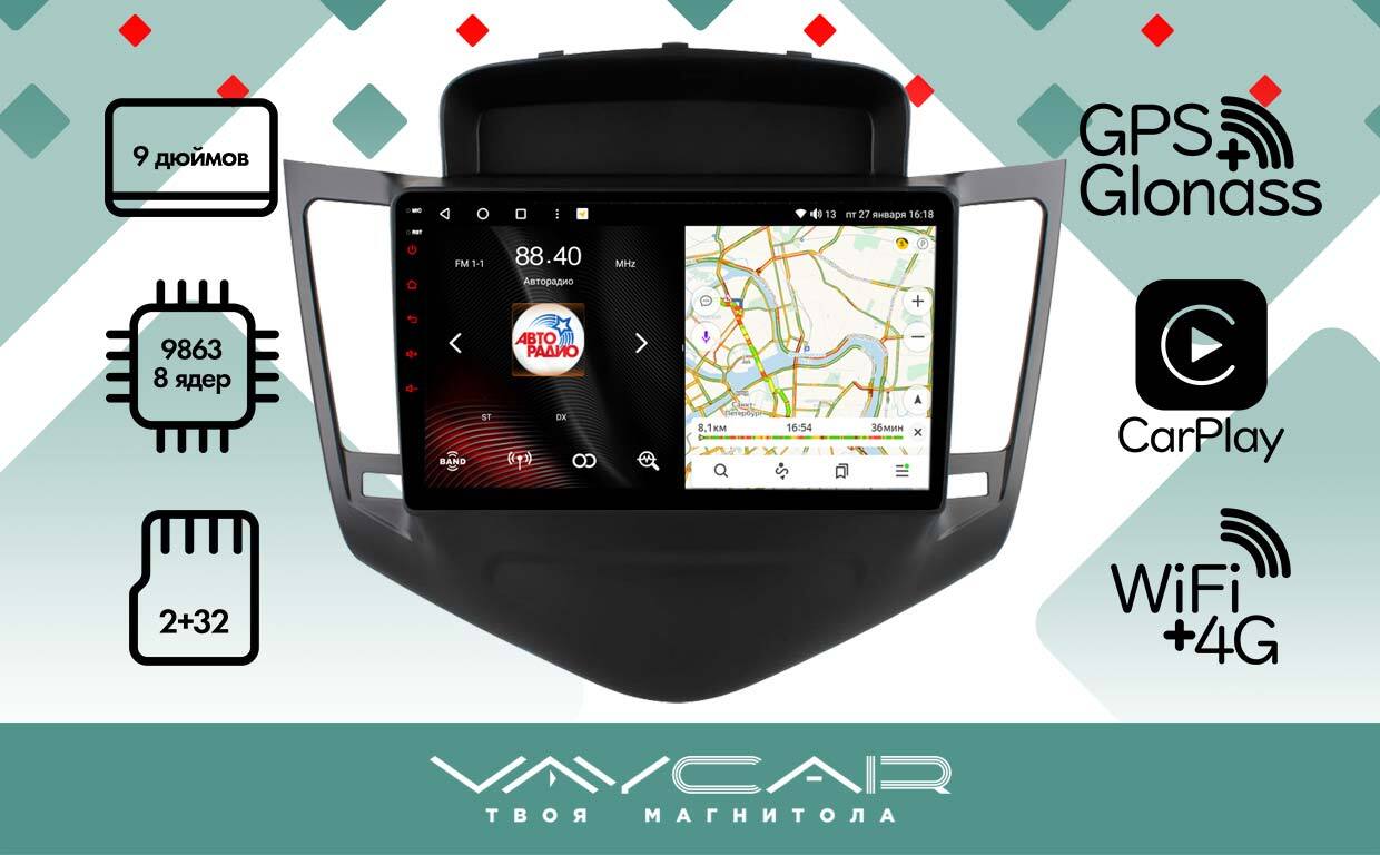 Магнитола для Chevrolet Cruze 2009-2012 - Vaycar VA10-0045 на Android 13, 8-ядер, 2Гб-32Гб, 4G SIM-слот