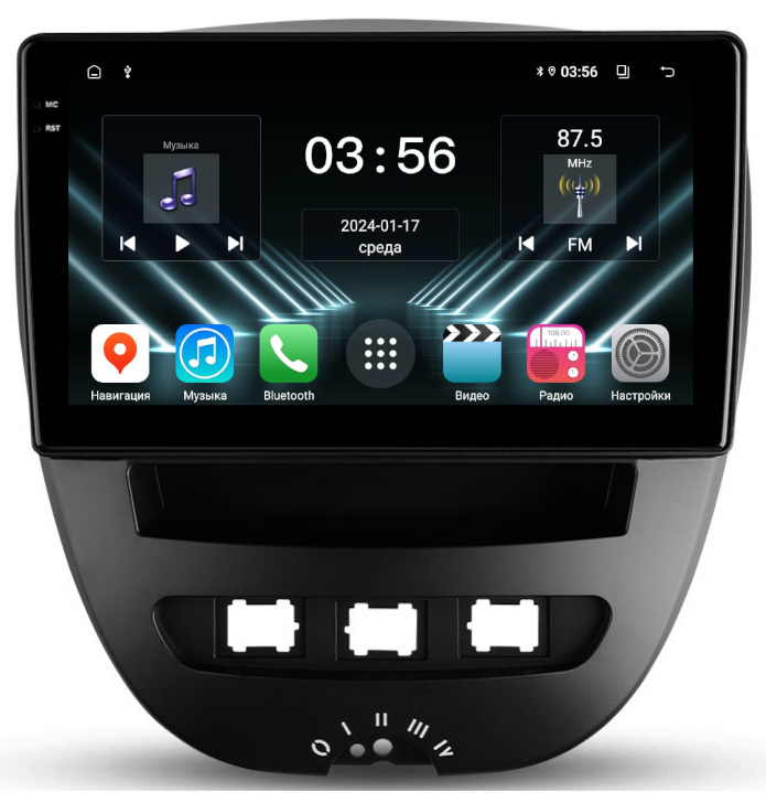 Магнитола для Citroen C1, Peugeot 107, Toyota Aygo - FarCar DX3072M монитор 10.36" IPS на Android 13, 4+64Гб, CarPlay