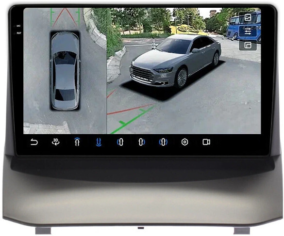 Магнитола для Ford Fiesta MK6 2008-2012 (красный БК, рамка тип 1) - FarCar BX3249M-360 монитор 9.5" 2K QLED на Android 13, 6Гб+128Гб, CarPlay, 4G SIM-слот, 4 камеры в комплекте