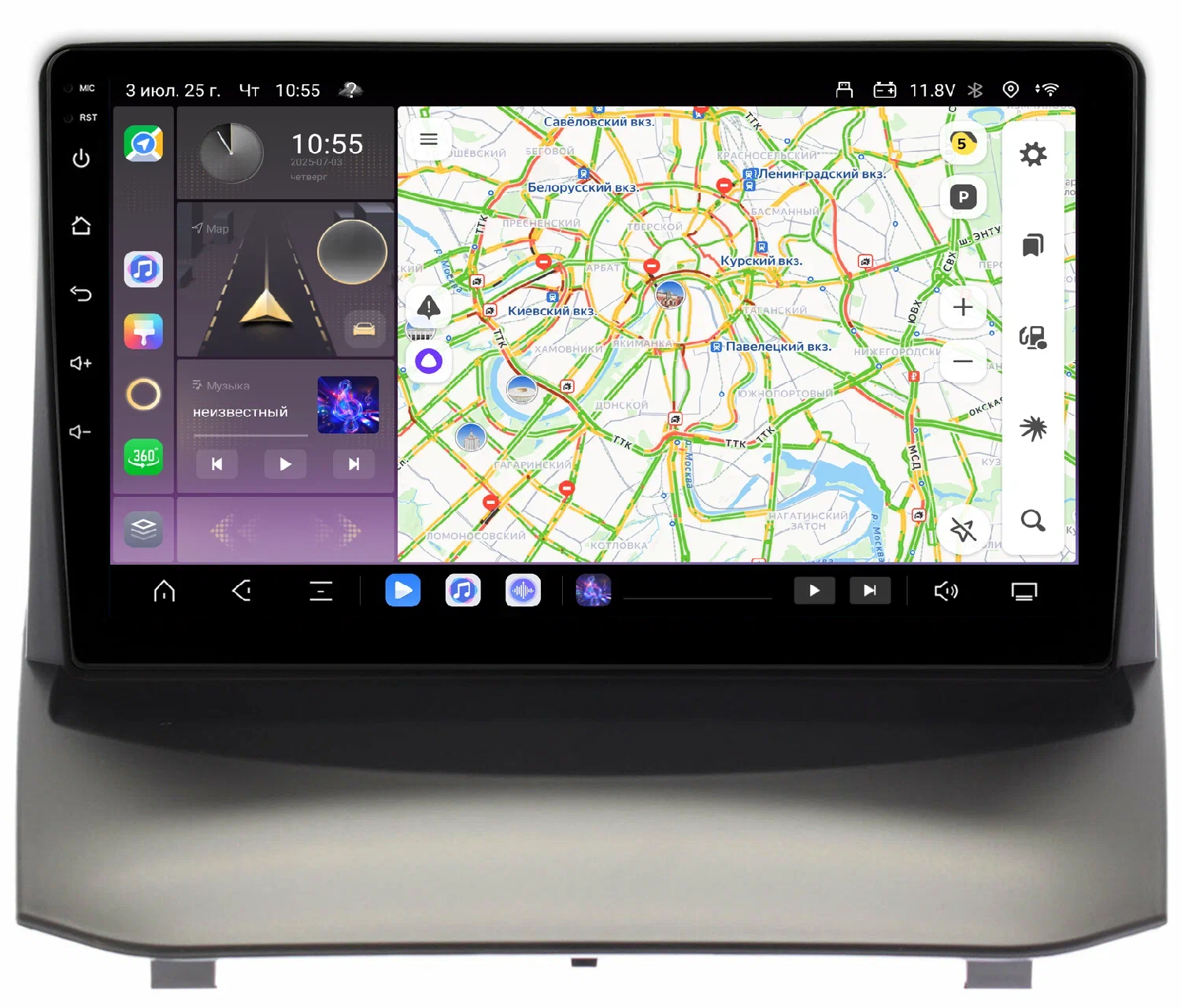 Поддержка навигации с пробками, голосовым набором маршрута и онлайн обновляемыми картами. С Google Play Market можно легко установить: Яндекс Навигатор (бесплатно), карты Google (бесплатно), Навител, Ситигид, Прогород и др. Возможность работы в фоновом режиме нескольких навигационных программ и музыки/видео одновременно!