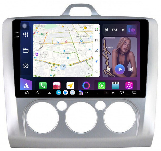 Магнитола для Ford Focus 2 2004-2011 (кондиционер) - FarCar GX003M монитор 9.5" 2K QLED на Android 14, TS20, 6+128Гб, CarPlay, 4G SIM-слот