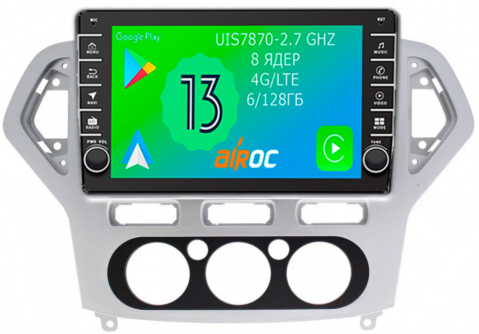 Магнитола для Ford Mondeo 4 2007-2010 (кондиционер) - Airoc AB-1708M (кнопки и крутилки), Android 13, TS20, 6/128Гб, SIM-слот, CarPlay