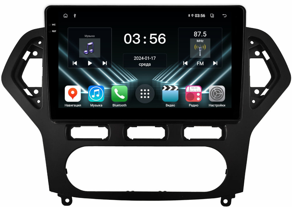 Магнитола для Ford Mondeo 4 2007-2010 (рамка черная) - FarCar DX1231M монитор 10.36" IPS на Android 13, 4+64Гб, CarPlay