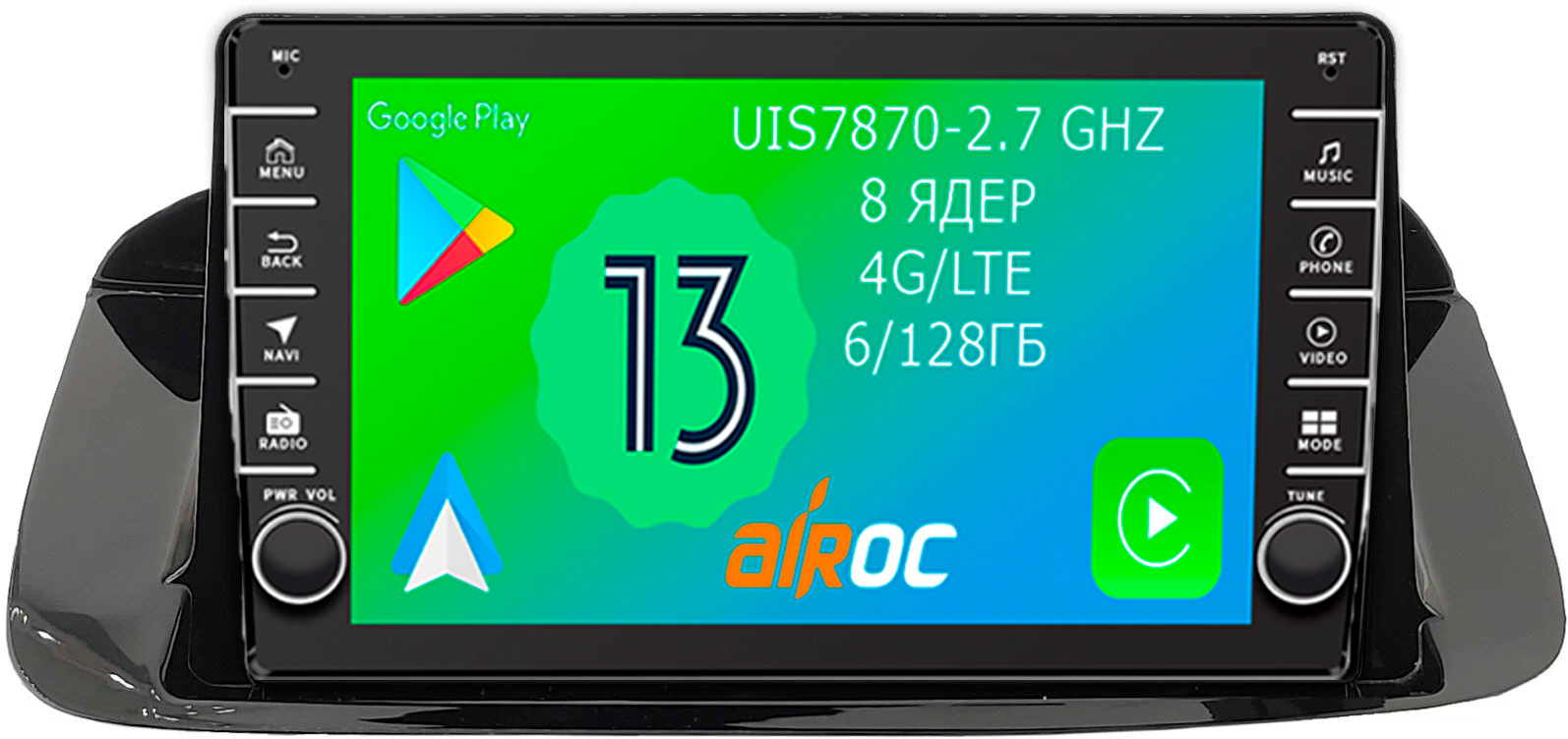 Емкостный мультитач - это современный цифровой дисплей, которым легко можно управлять несколькими пальцами, масштабируя карты и картинки. Тип матрицы – QLED, Разрешение экрана: 1280*720. К тому же дисплеи на магнитолах Airoc хорошо зарекомендовали себя в условиях суровых Российских морозов.