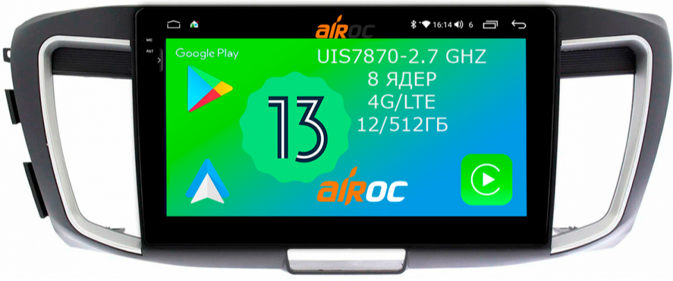Магнитола для Honda Accord 9 2013-2015 (CR2) - Airoc 2K AU-1906 на Android 13, TS20, 12/512Гб, SIM-слот