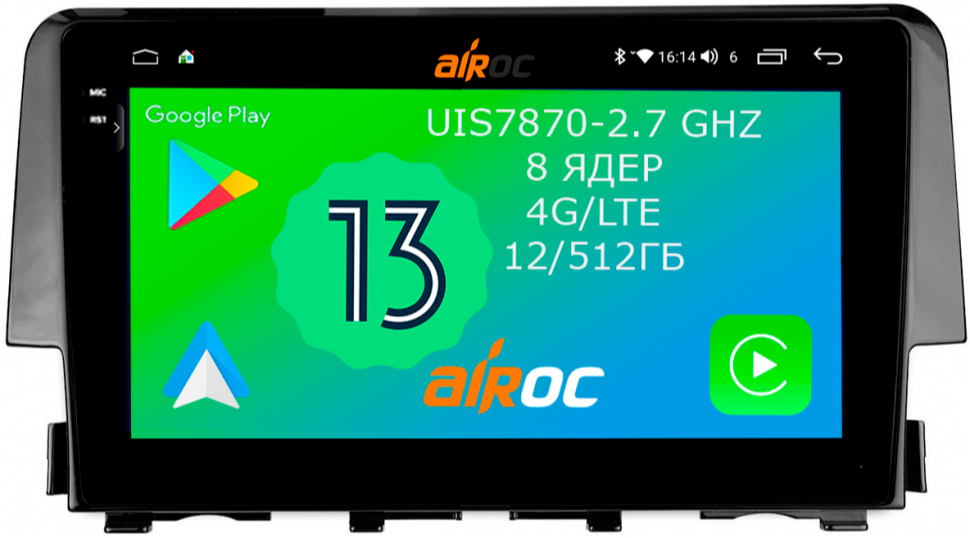 Магнитола для Honda Civic 10 2015-2021 - Airoc 2K AU-1941 на Android 13, TS20, 12/512Гб, SIM-слот