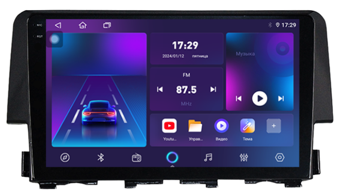 Магнитола для Honda Civic 10 2015-2021 - Parafar PF977LUX1RN2K на Android 13, QLED+2K, ТОП процессор, 4Гб+32Гб, CarPlay, 4G SIM-слот