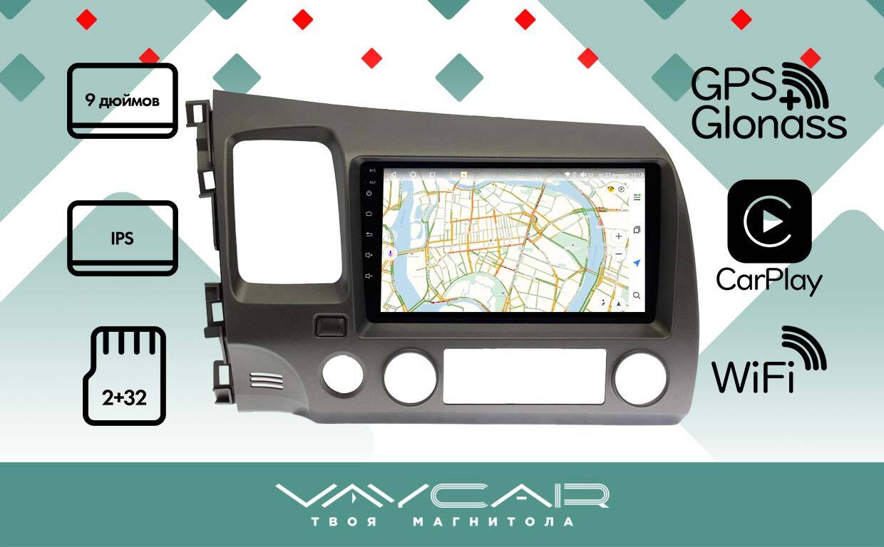 Магнитола для Honda Civic 2005-2012 (левый руль, рамка 9)- Vaycar VA20-0044 на Android 13, 8-ядер, 2Гб-32Гб, 4G SIM-слот
