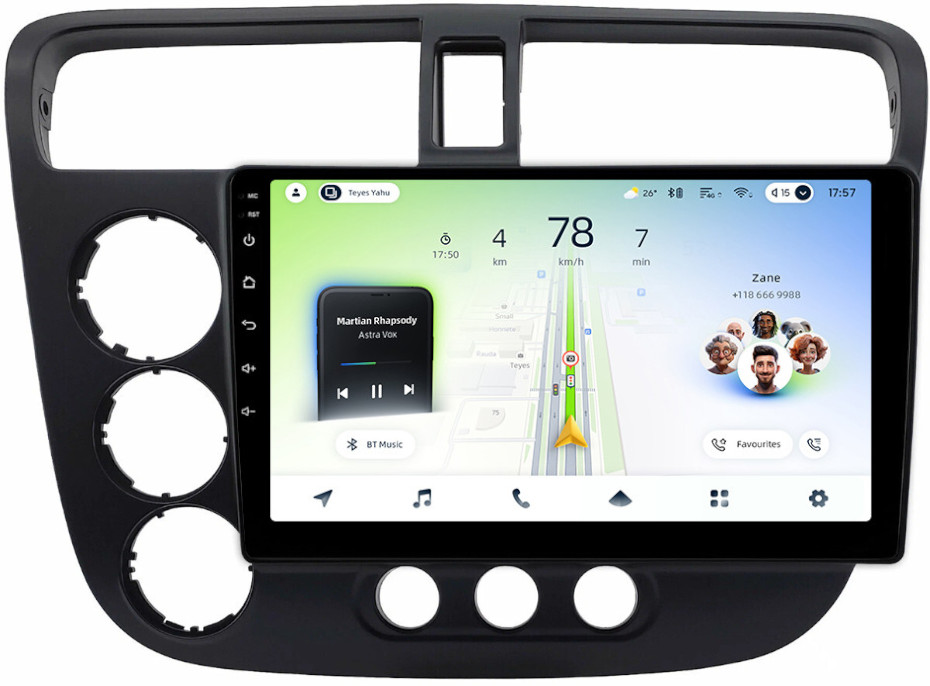 Магнитола для Honda Civic 7 2001-2005 левый руль - Teyes CC4L монитор 9" IPS на Android 14, Snapdragon 662, CarPlay, 4G SIM-слот