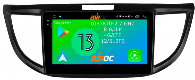 Магнитола для Honda CR-V 2012-2018 - Airoc 2K AU-1904B (рамка 9) на Android 13, TS20, 12/512Гб, SIM-слот