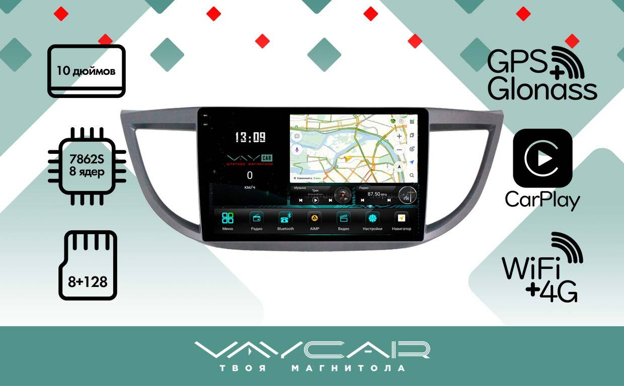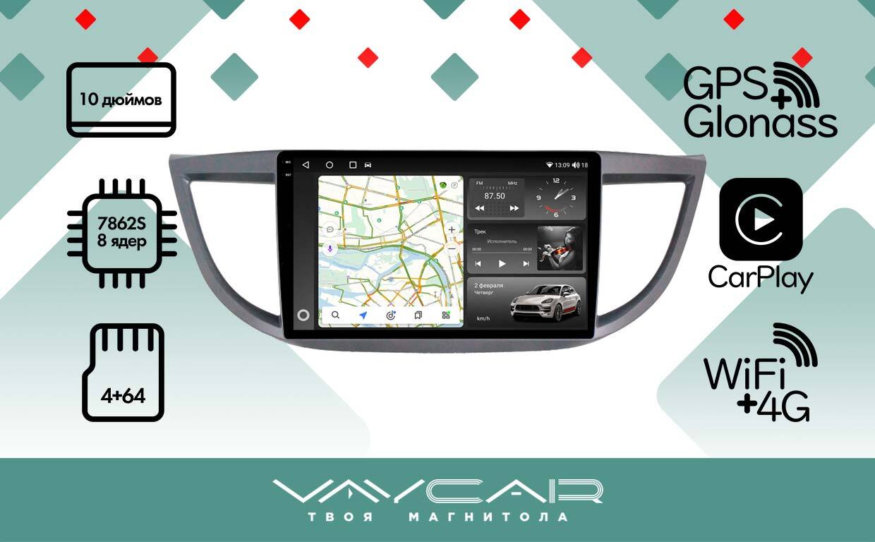 Магнитола для Honda CR-V 4 2012-2016 (большая рамка 10) - Vaycar VA20-0469-2K на Android 13, 8-ядер, 2K QLED, ТОП процессор, CarPlay,4G SIM-слот