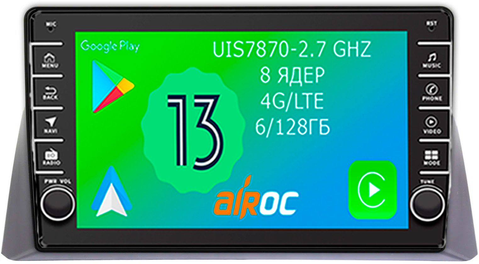 Емкостный мультитач - это современный цифровой дисплей, которым легко можно управлять несколькими пальцами, масштабируя карты и картинки. Тип матрицы – QLED, Разрешение экрана: 1280*720. К тому же дисплеи на магнитолах Airoc хорошо зарекомендовали себя в условиях суровых Российских морозов.