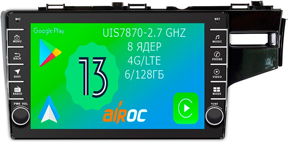 Магнитола для Honda Fit 3 2013-2020 (правый руль) - Airoc AB-1912R (кнопки и крутилки), Android 13, TS20, 6/128Гб, SIM-слот, CarPlay