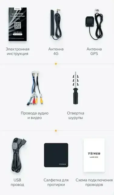 1. Монитор магнитолы поставляется в фирменной премиум-упаковке Teyes с указанием основных характеристик.