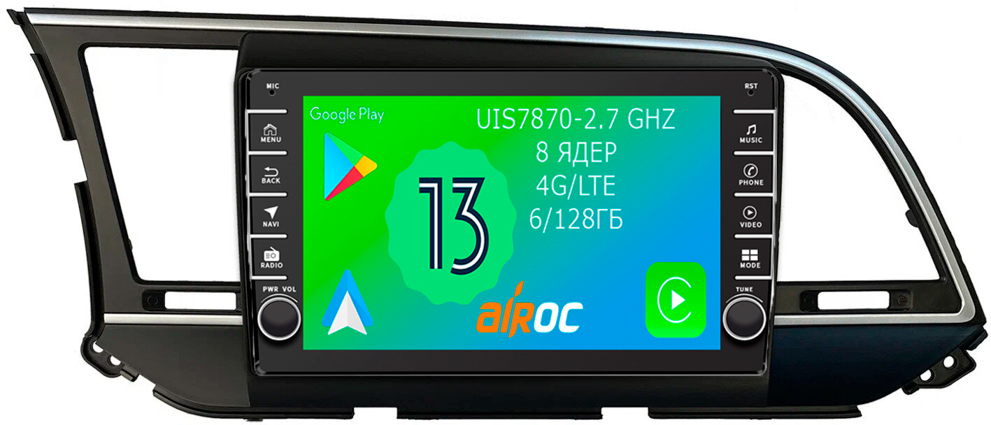 Магнитола для Hyundai Elantra 2016-2018 - Airoc AB-2016 (кнопки и крутилки), Android 13, TS20, 6/128Гб, SIM-слот, CarPlay