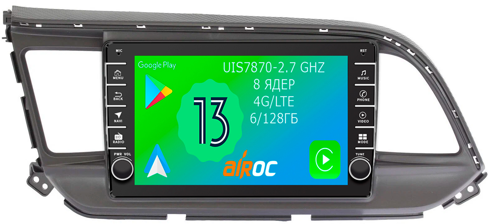 Магнитола для Hyundai Elantra 2019-2020 - Airoc AB-2026 (кнопки и крутилки), Android 13, TS20, 6/128Гб, SIM-слот, CarPlay