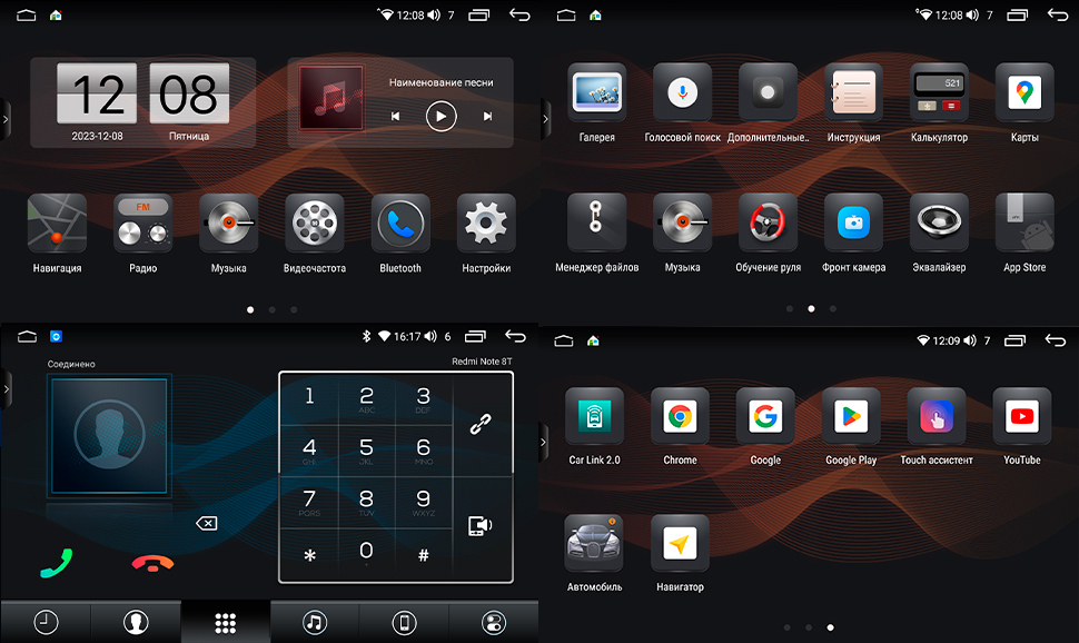 Интерфейс Android 12 разработан специально для использования в автомобиле, на Русском языке. Пользоваться навигацией и устанавливать приложения с Google Play Market так же просто, как и на обычном смартфоне или планшете