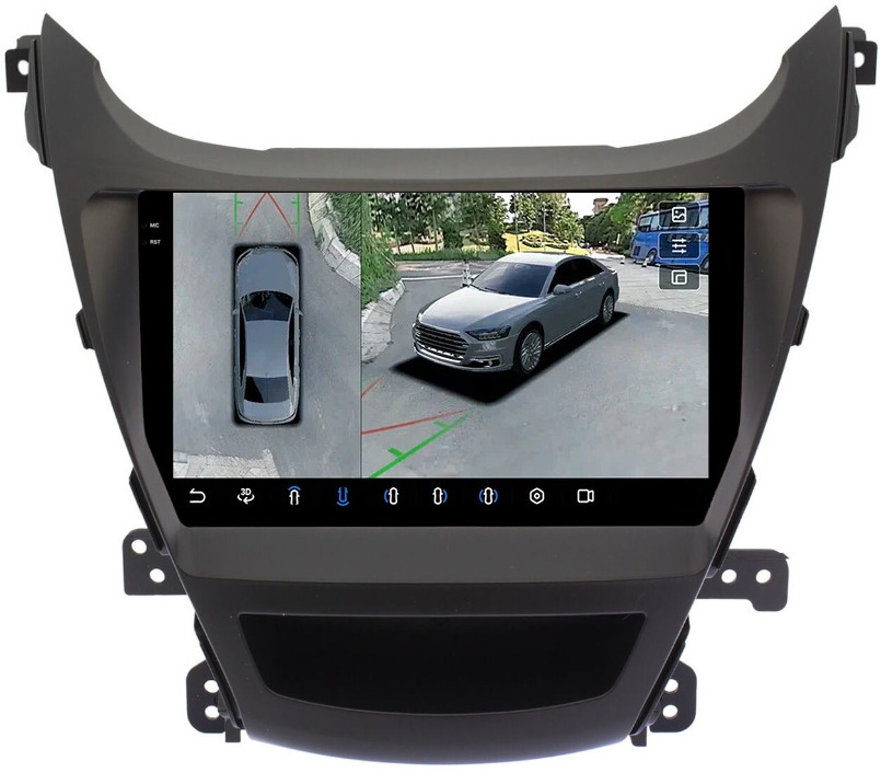 Магнитола для Hyundai Elantra 5 MD 2013-2015 (рестайлинг) - FarCar BX3083M-360 монитор 9.5" 2K QLED на Android 13, 6Гб+128Гб, CarPlay, 4G SIM-слот, 4 камеры в комплекте