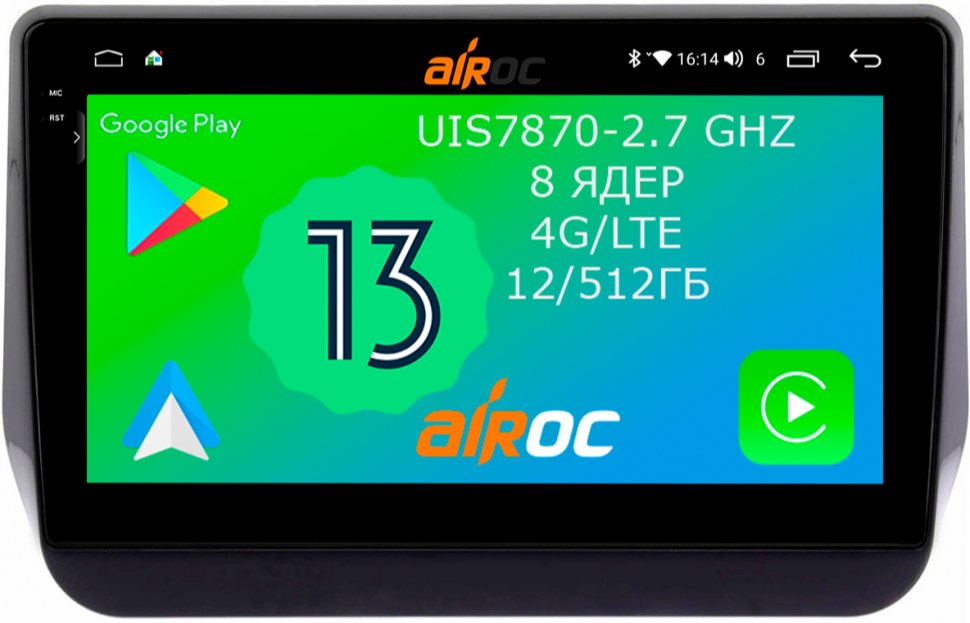 Емкостный мультитач - это современный цифровой дисплей, которым легко можно управлять несколькими пальцами, масштабируя карты и картинки. Тип матрицы – QLED, Разрешение экрана: 2000x1200. К тому же дисплеи на магнитолах Airoc хорошо зарекомендовали себя в условиях суровых Российских морозов.