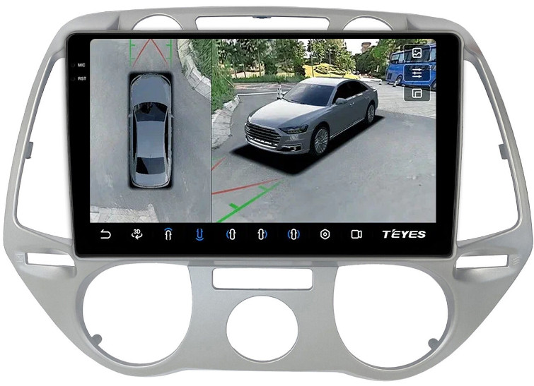 Магнитола для Hyundai i20 2009-2012 (кондиционер) - Teyes CC3-2K-360 монитор 9.5" 2K QLED на Android 10, 6+128Гб, CarPlay, 4G SIM-слот, 4 камеры в комплекте