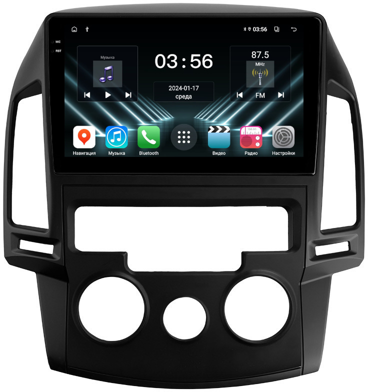 Магнитола для Hyundai i30 1 2007-2012 (кондиционер) - FarCar DX024M монитор 9.5" IPS на Android 13, 4+64Гб, CarPlay
