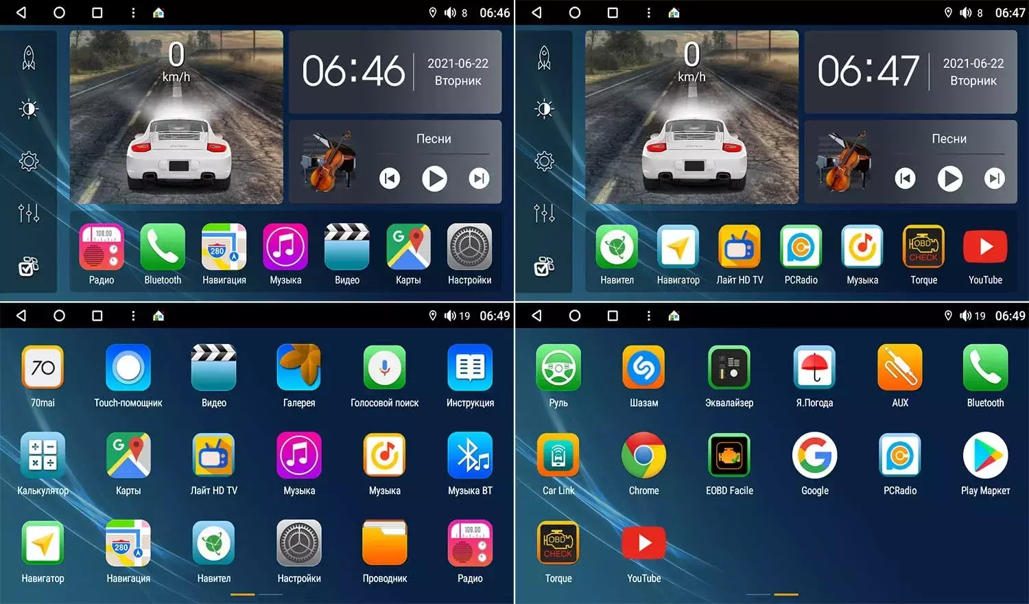 Интерфейс Android 10 разработан специально для использования в автомобиле, на Русском языке. Пользоваться навигацией и устанавливать приложения с Google Play Market так же просто, как и на обычном смартфоне или планшете