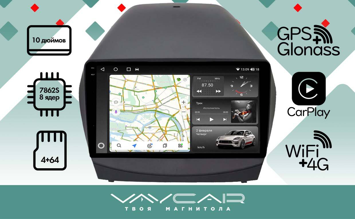Магнитола для Hyundai ix35 2009-2015 - Vaycar VA23-0361-2K на Android 13, 8-ядер, 2K QLED, ТОП процессор, CarPlay,4G SIM-слот