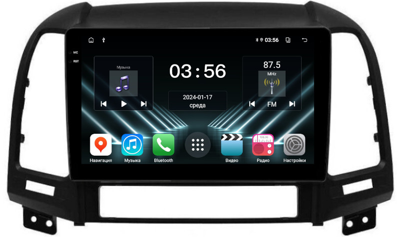 Магнитола для Hyundai Santa Fe 2 CM 2006-2012 (рамка черная) - FarCar DX008M монитор 9.5" IPS на Android 13, 4+64Гб, CarPlay