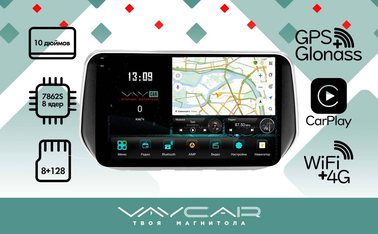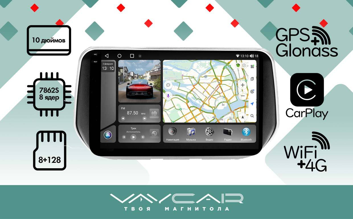 Магнитола для Hyundai Santa Fe 2018-2020 - Vaycar VA23-1124-2K на Android 13, 8-ядер, 2K QLED, ТОП процессор, CarPlay,4G SIM-слот