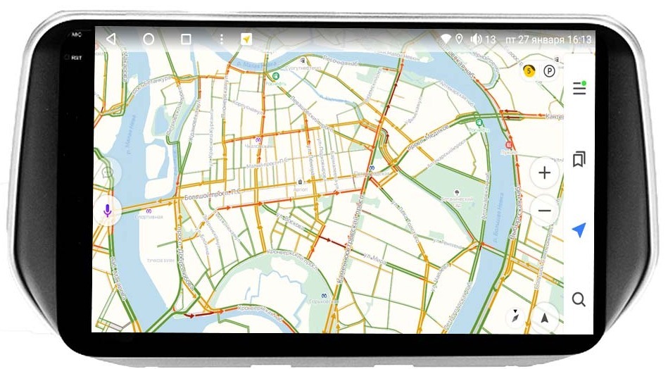 Поддержка навигации с пробками, голосовым набором маршрута и онлайн обновляемыми картами. С Google Play Market можно легко установить: Яндекс Навигатор (бесплатно), карты Google (бесплатно), Навител, Ситигид, Прогород и др. Возможность работы в фоновом режиме нескольких навигационных программ и музыки/видео одновременно!