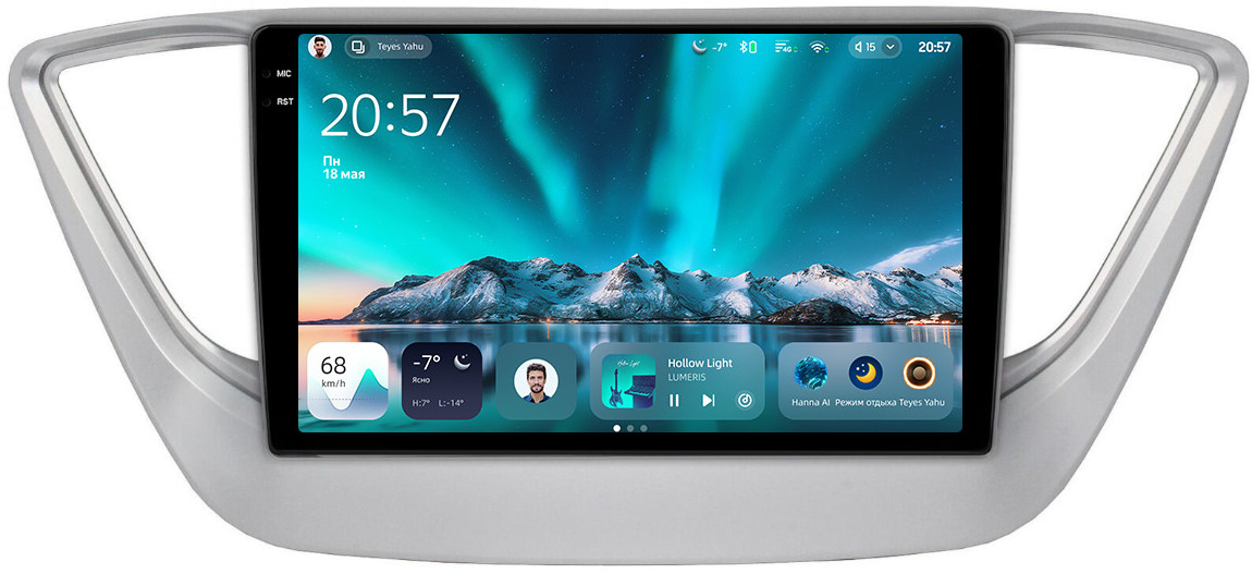 Магнитола для Hyundai Solaris 2 2017-2022, Solaris HS 2024+ (рамка серебро) - Teyes CC4 монитор 9.2" 2K QLED на Android 14, Snapdragon 680, DSP, CarPlay, 4G SIM-слот