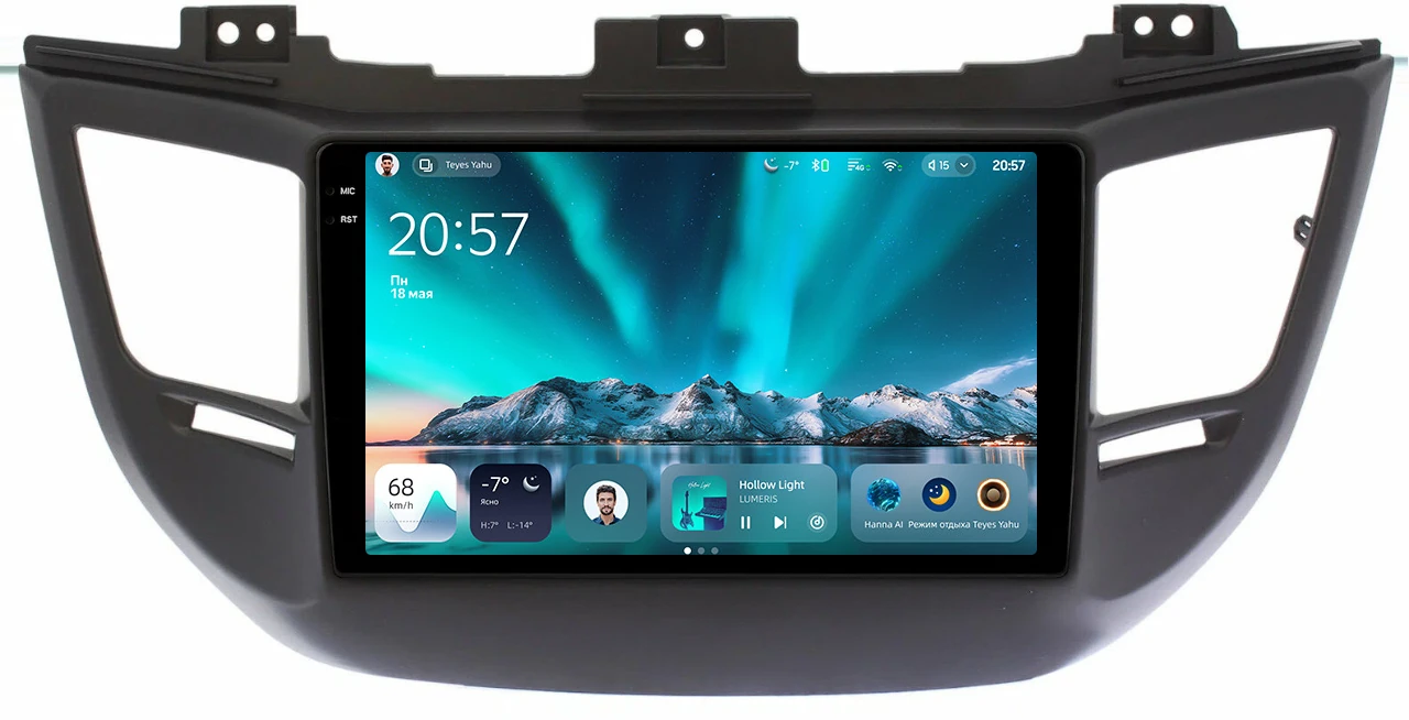 Магнитола для Hyundai Tucson 3 2015-2018 (без штатной КЗВ, рамка черная) - Teyes CC4 монитор 9.2" 2K QLED на Android 14, Snapdragon 680, DSP, CarPlay, 4G SIM-слот