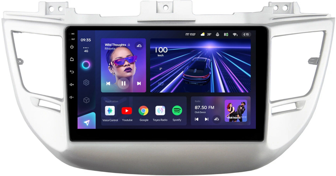 Магнитола для Hyundai Tucson 3 2015-2018 (без штатной КЗВ, рамка серебро) - Teyes CC3 монитор 9" QLED на Android 10, ТОП процессор, 4Гб+32Гб, CarPlay, 4G SIM-слот
