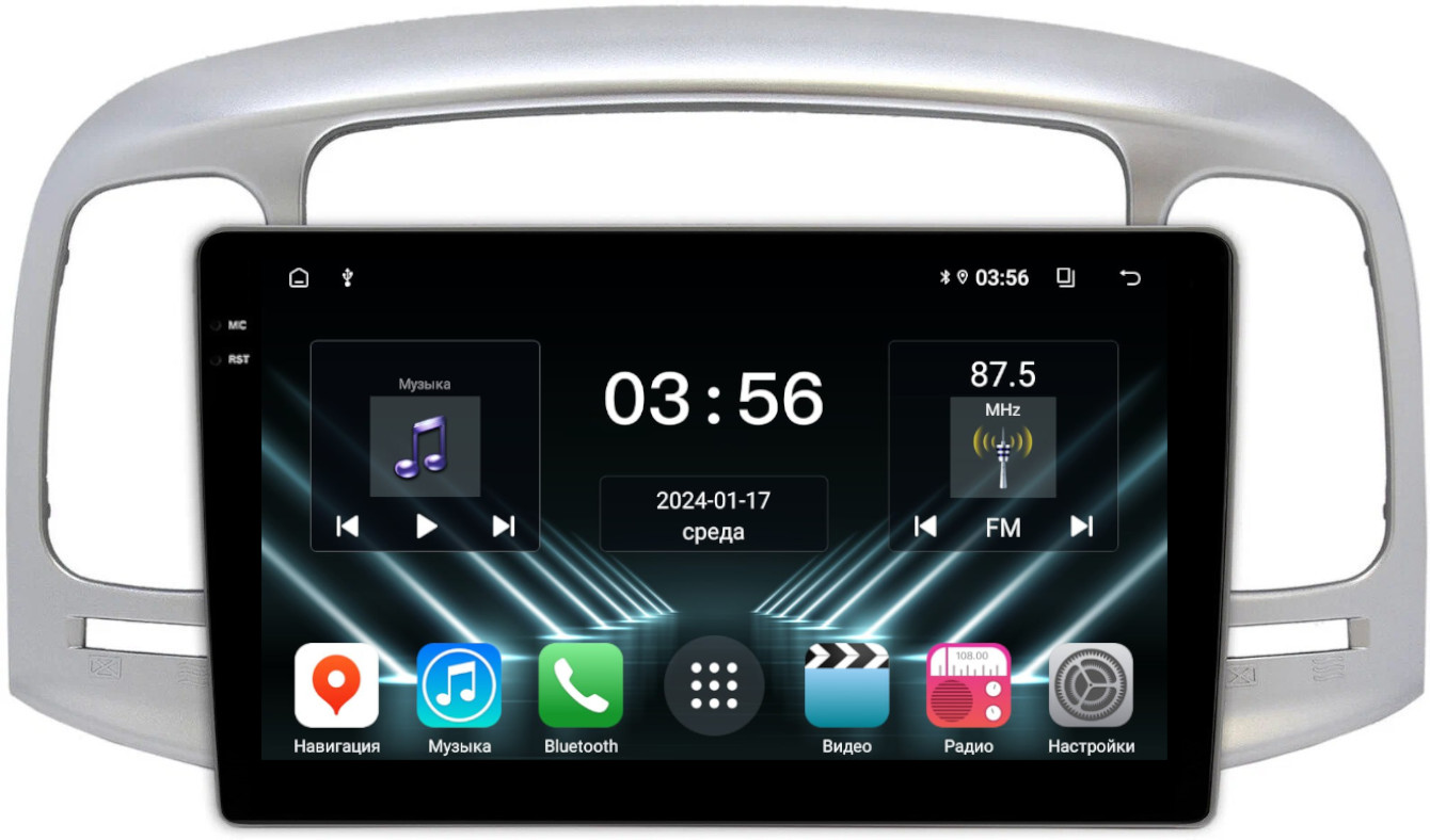 Магнитола для Hyundai Verna 2006-2010 (рамка серебро) - FarCar DX3009M монитор 9.5" IPS на Android 13, 4+64Гб, CarPlay
