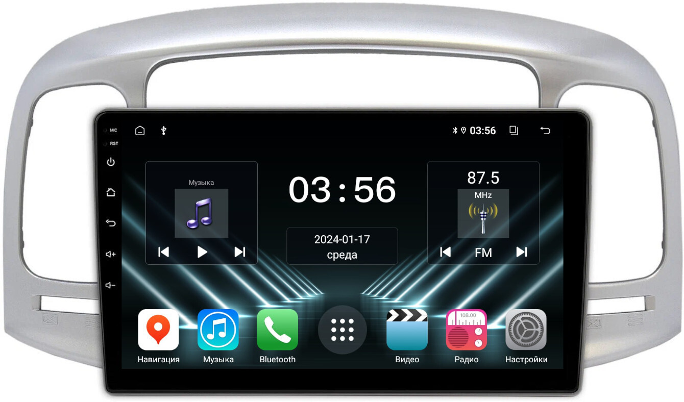 Магнитола для Hyundai Verna 2006-2010 (рамка серебро) - FarCar DX3009M монитор 9" IPS на Android 13, 4+64Гб, CarPlay