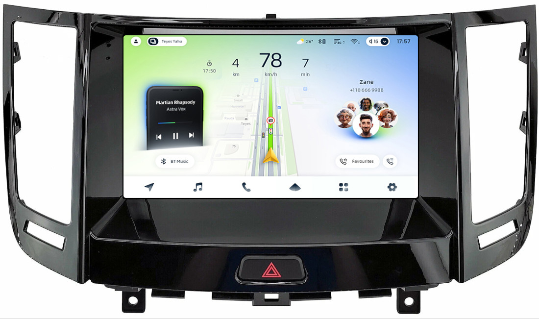 Магнитола для Infiniti FX35, FX37, FX50, FX30D S51 2008-2012, QX70 S51 2013-2018 (рамка черный глянец тип 1) - Teyes CC4L монитор 9" IPS на Android 14, Snapdragon 662, CarPlay, 4G SIM-слот