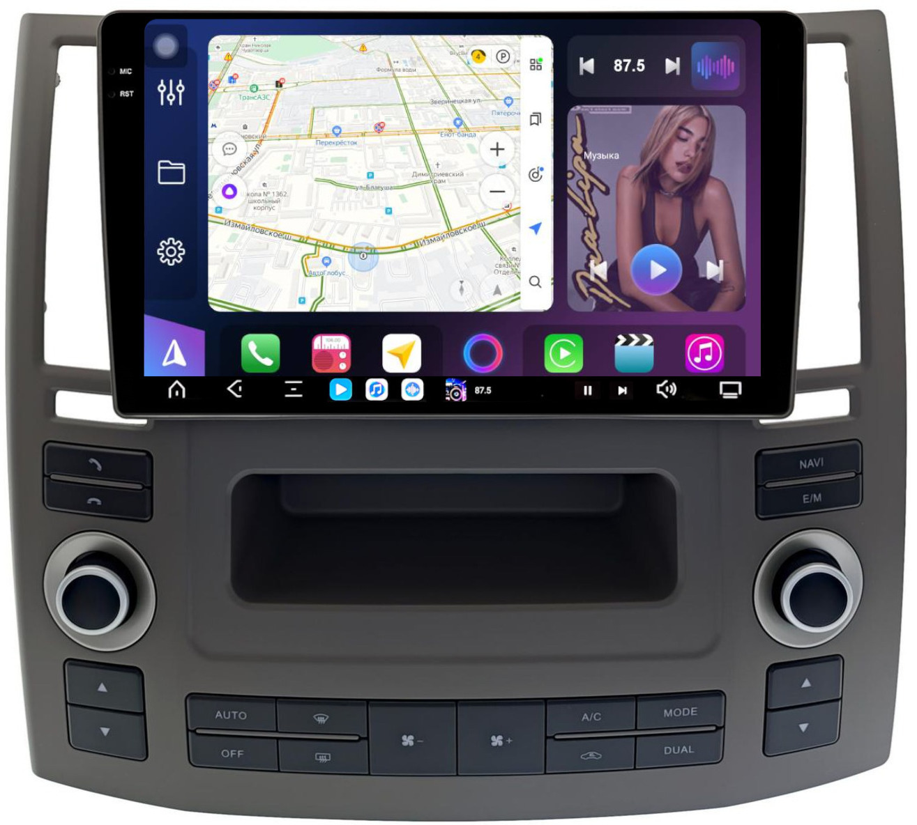 Магнитола для Infiniti FX35, FX45 S50 2006-2008 - FarCar GX9-9685 монитор 9.5" 2K QLED на Android 14, TS20, 6+128Гб, CarPlay, 4G SIM-слот