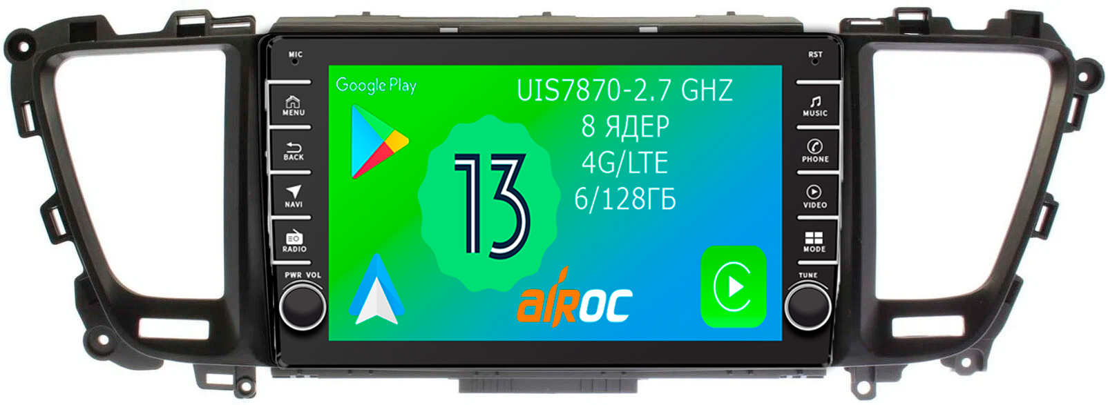 Магнитола для KIA Carnival 3 2014-2020 - Airoc AB-2303 (кнопки и крутилки), Android 13, TS20, 6/128Гб, SIM-слот, CarPlay