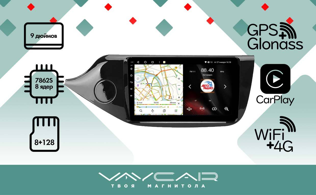 Магнитола для KIA Ceed 2 (JD) 2012-2018 (рамка глянец) - Vaycar VA27-0216 на Android 13, 8-ядер, 4G SIM-слот